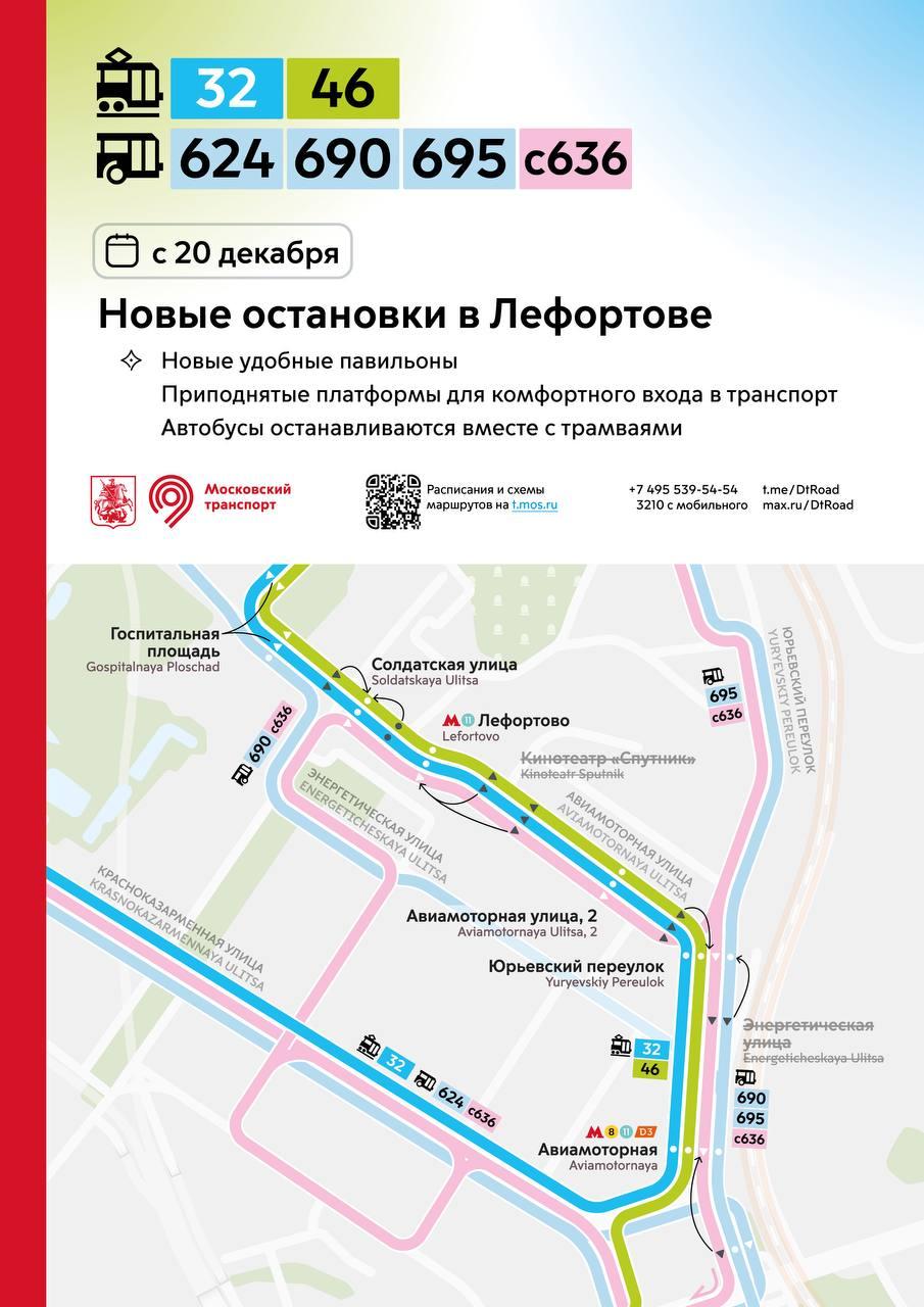 Приподнятые платформы построены также в Лефортово на улицах Солдатской и Авиамоторной, вблизи станций метро «Лефортово» и «Авиамоторная». На них делают остановку трамваи 32 и 46 вместе с автобусами 624, 690, 695 и с636.