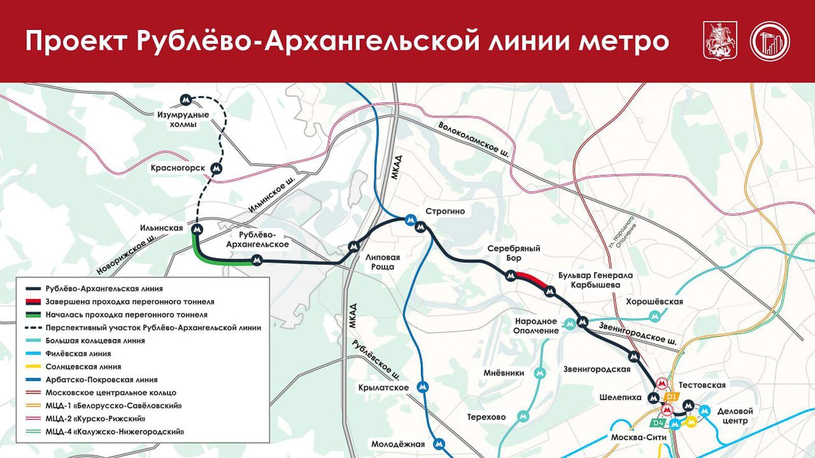 Власти объявили сроки открытия первого участка Рублево-Архангельской линии метро